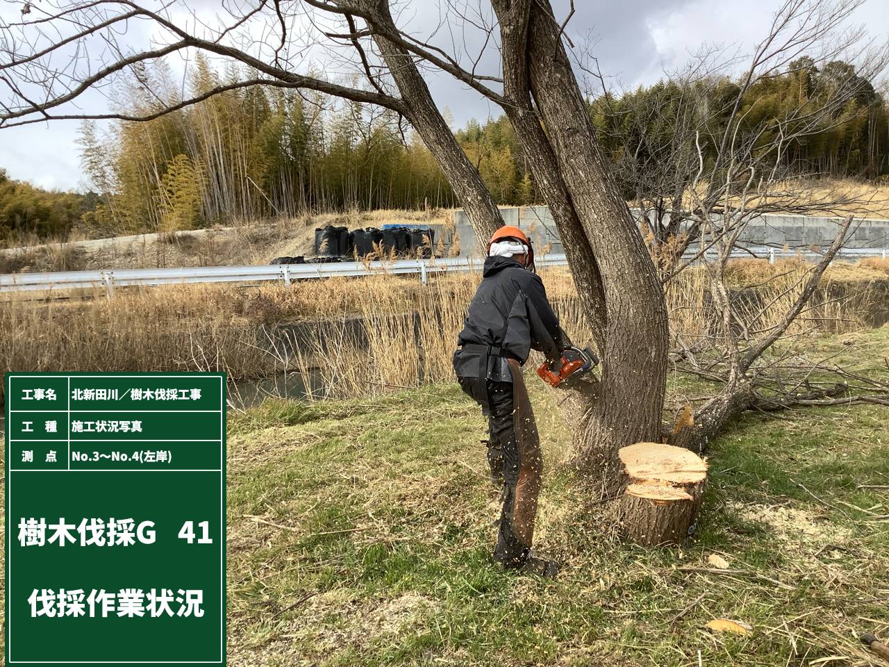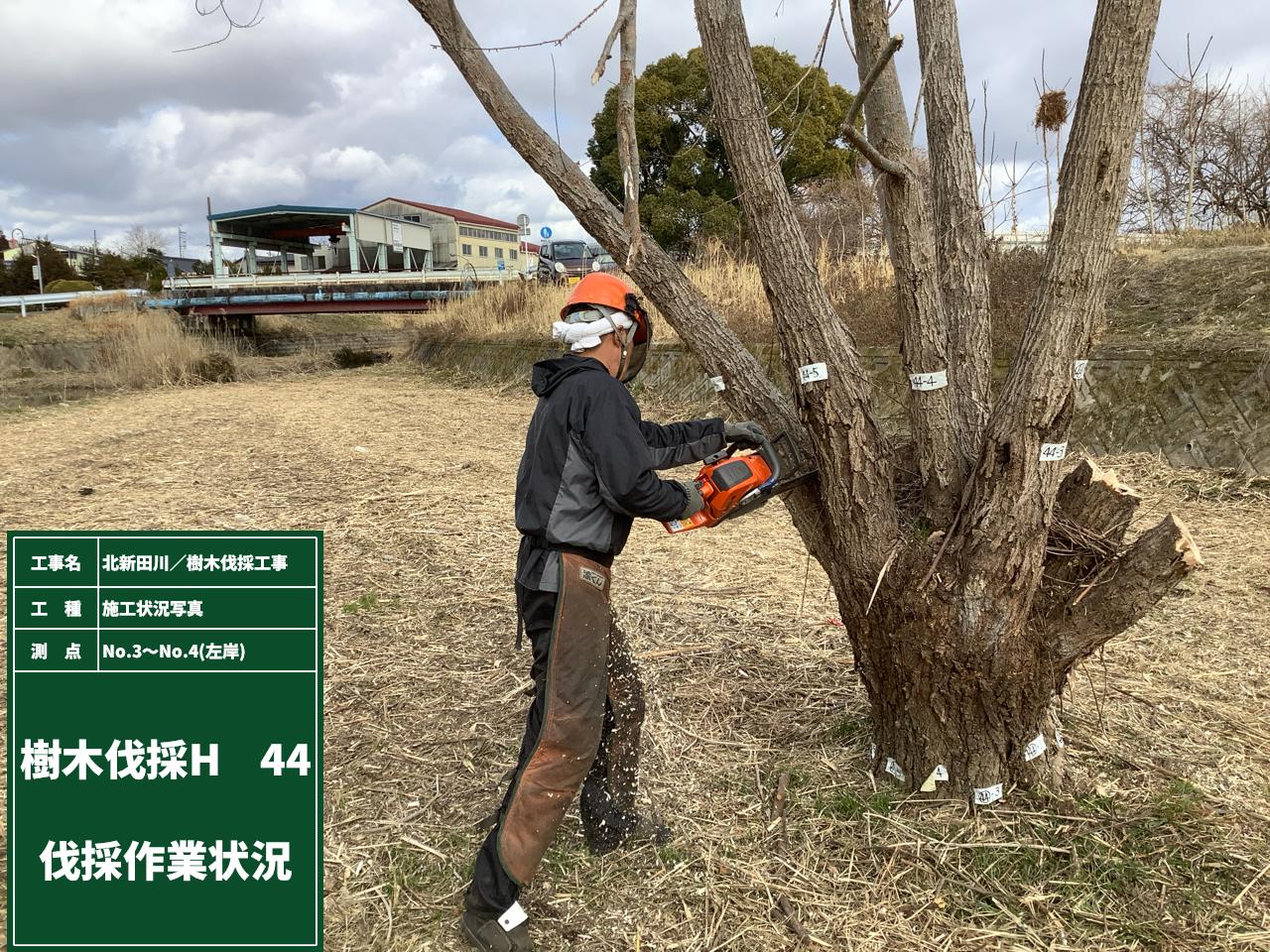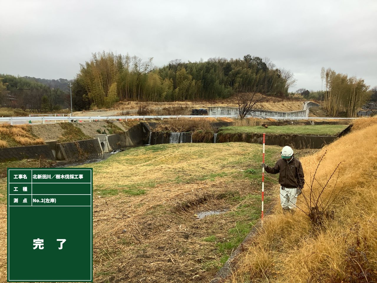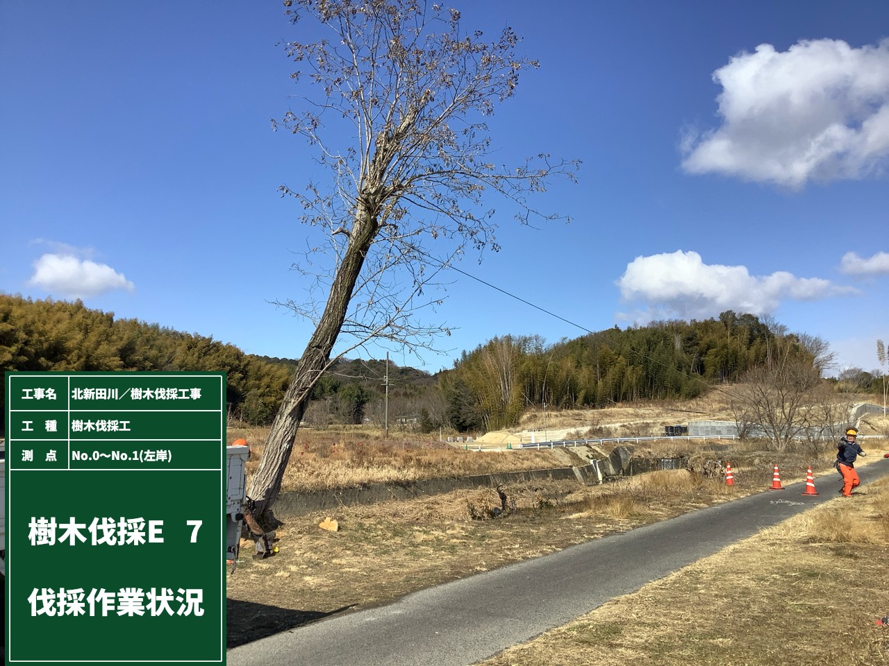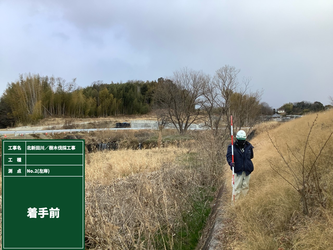 本工事は、北新田川における河川機能の維持および周辺環境の整備を目的として、支障となる樹木の伐採を行うものである。 施工内容は、河川内および河川敷に生育している樹木のうち、治水機能の阻害や維持管理上支障となる樹木の伐採であり、伐採本数は合計136本とする。 施工にあたっては、周辺環境への影響を最小限に抑えるとともに、安全管理を徹底し、適切に作業を実施するものとする。