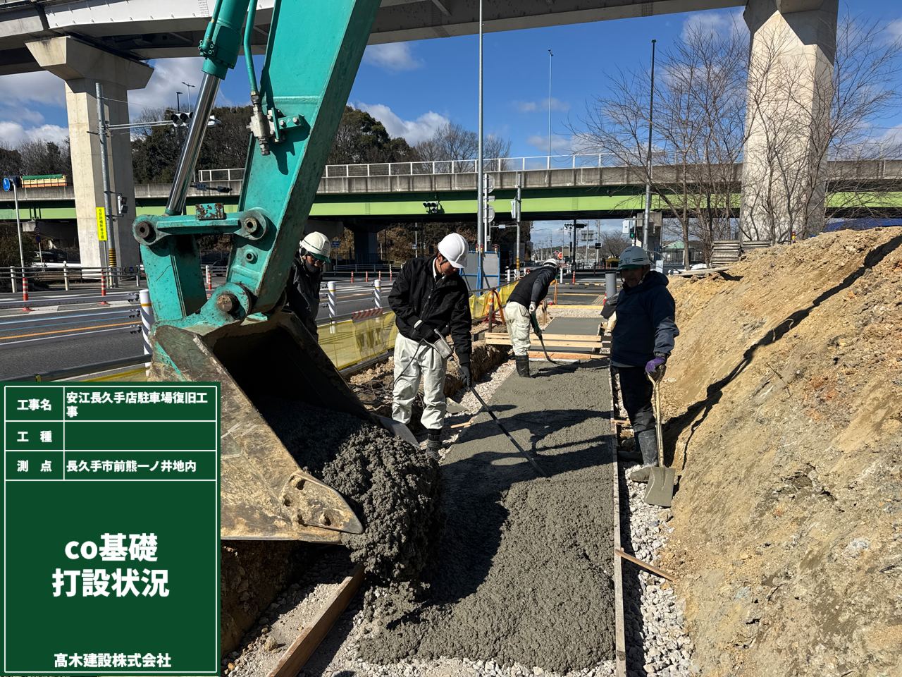 本工事は、そば安江様の店舗駐車場において、既存構造物の取壊しを行い、L型擁壁の設置および路盤・舗装の全面復旧を行う工事です。施工範囲は舗装面積467m2にわたり、駐車場としての機能を回復することを目的としています。